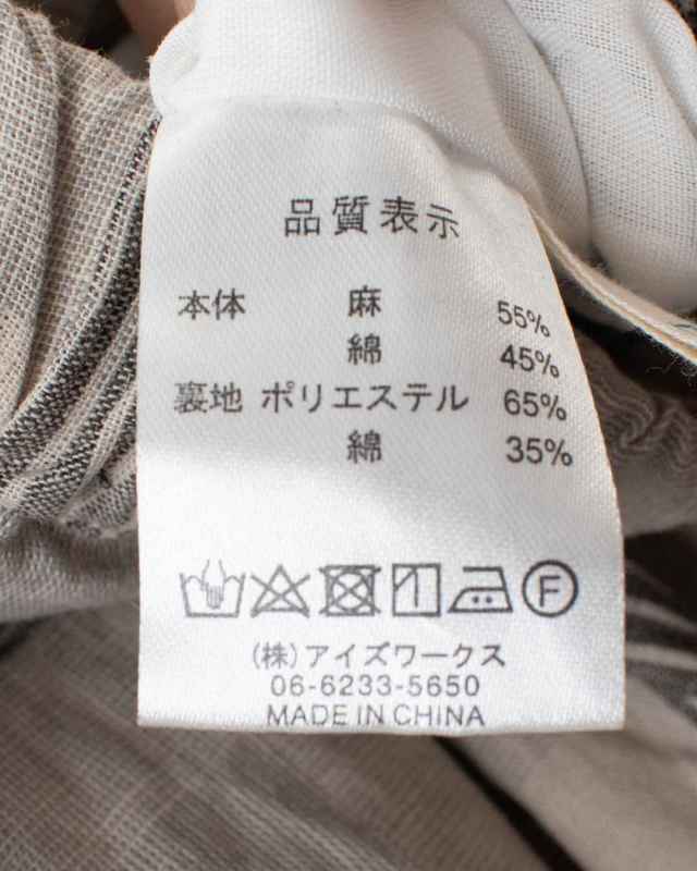 | 素 材 | 【本体】 麻:55% 綿:45% 【裏地】 ポリエステル:65% 綿:35% |