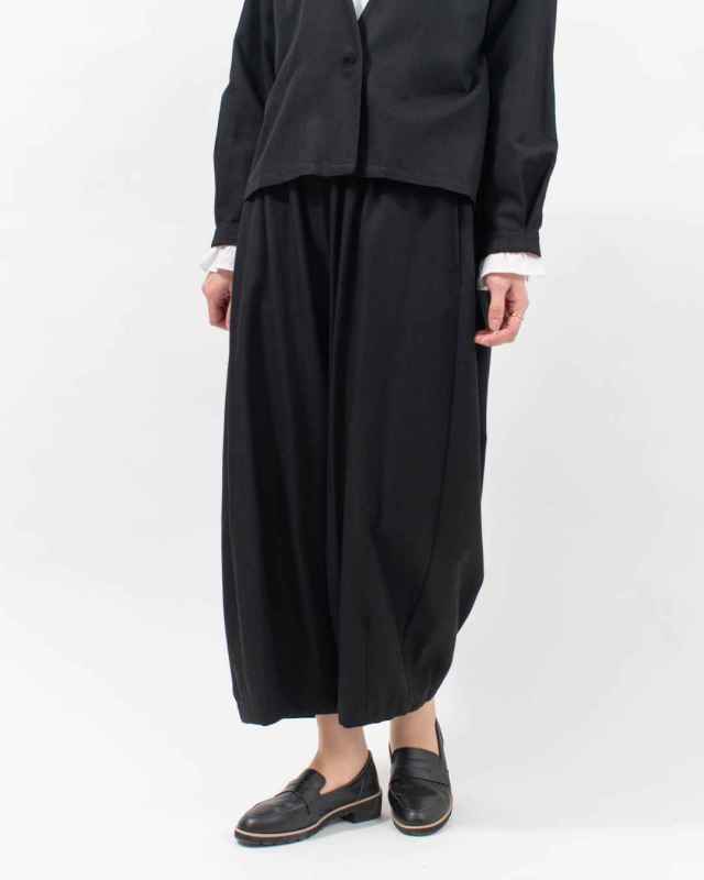 バックヘムにはフリル風のゴム入りギャザーを施し、後ろ姿にさりげない可愛らしさをプラスしました。