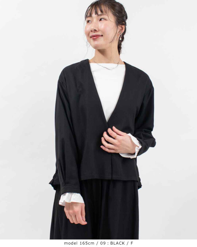 レーヨン混ツイル素材を使用した、ソフトでなめらかな風合いが魅力のトップス。軽やかな着心地で、ロングシーズン活躍する一着です。