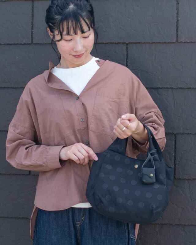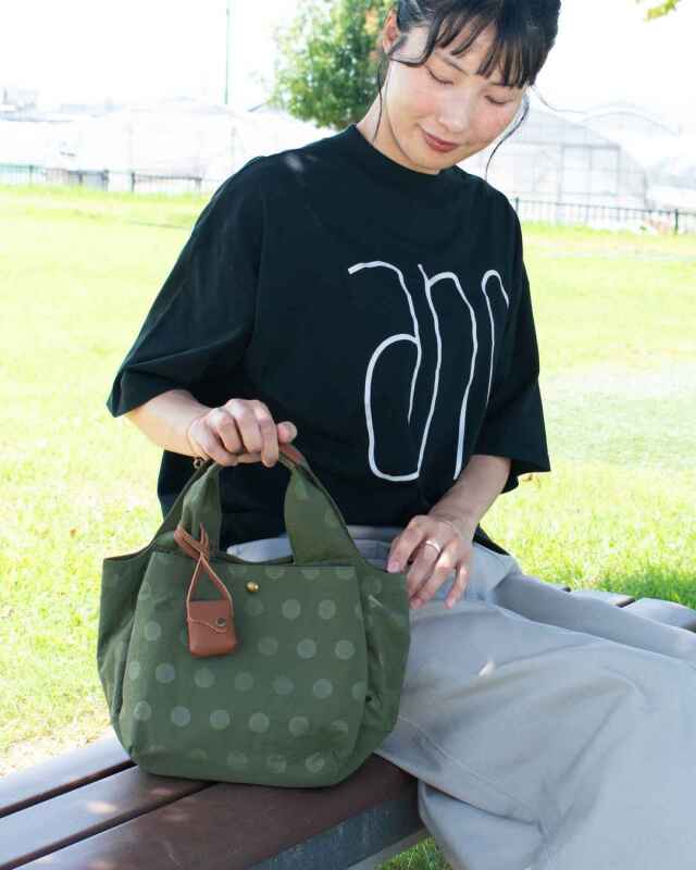 幅広い世代の方に人気のドット柄のトートバッグです。さりげないドット柄が、こっそりと個を感じることの出来る仕上がりです。