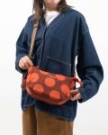 目の詰まった発色のよいポリエステルニット生地を使用本体と水玉柄の配色が明るくたのしいムード♪着こなしのワンポイントに!