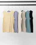 ゆったりとしたノースリーブデザインは、肩まわりを程よくカバーしつつ、涼しげでリラックス感のある着こなしが楽しめます。