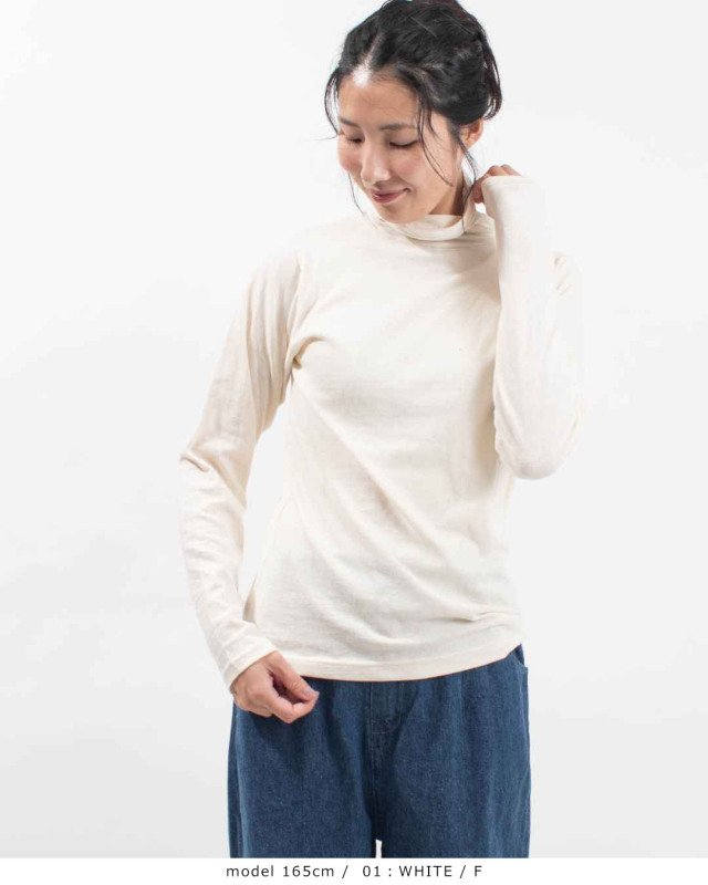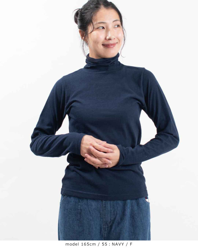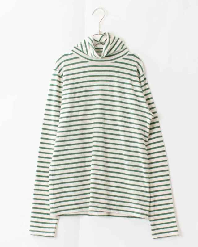シンプルながらも永く愛される定番タートルネック。環境にやさしい「エコリバイバル素材」を使用しており、紡績工程で余分として出る落ち綿を再利用してつくられています。