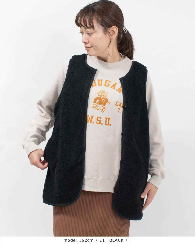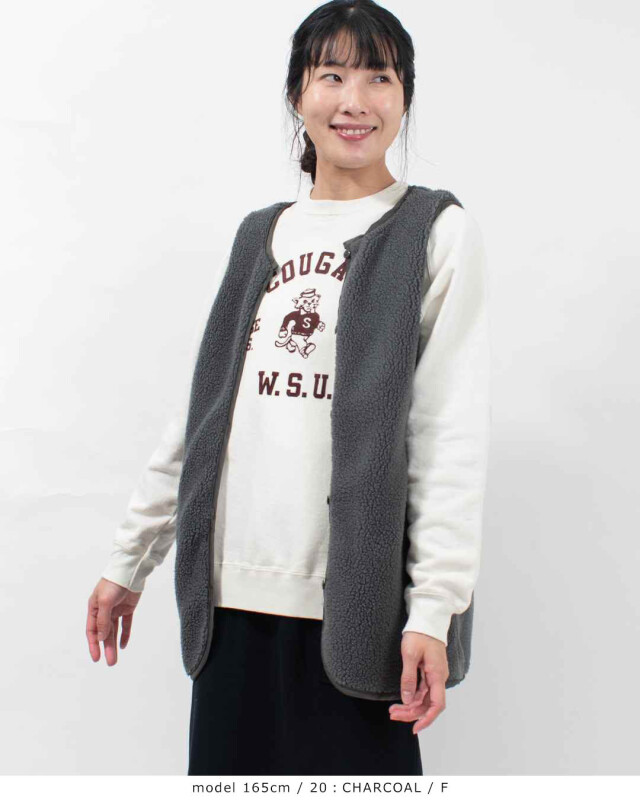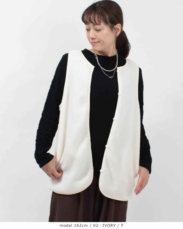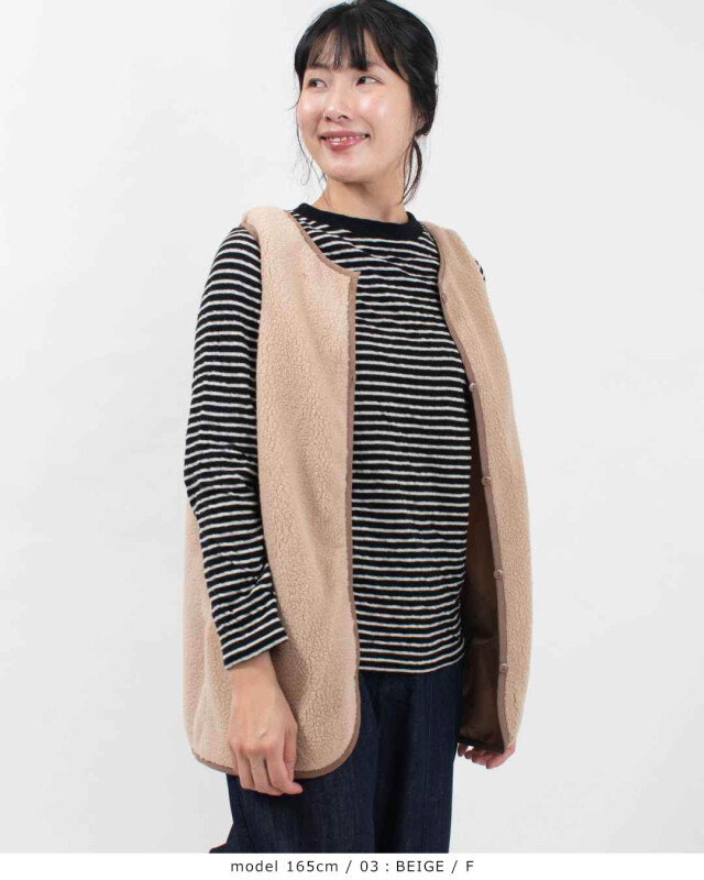 中のボアベストとキルティングコートは別々に着用可能。
