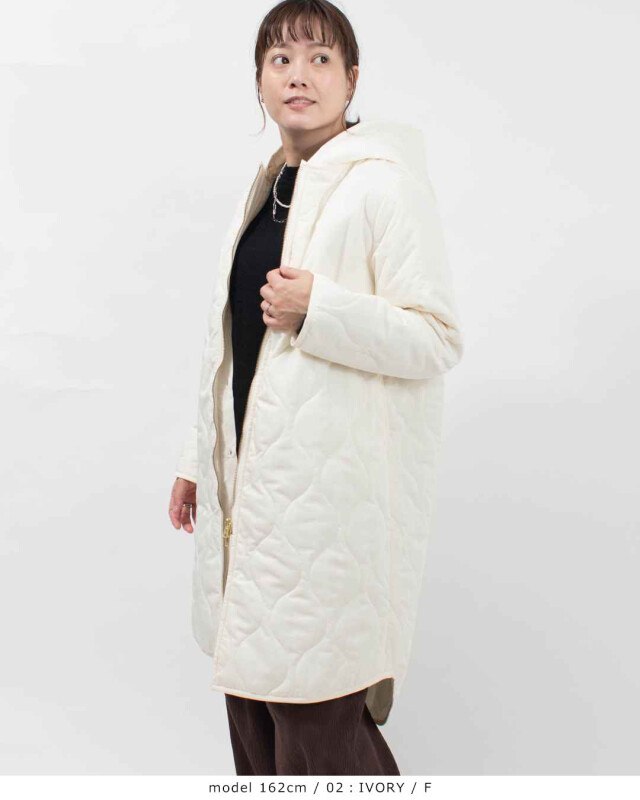 マルチWAYのキルティングコートです。ウォーム感がありながら肉厚すぎない中綿素材です。