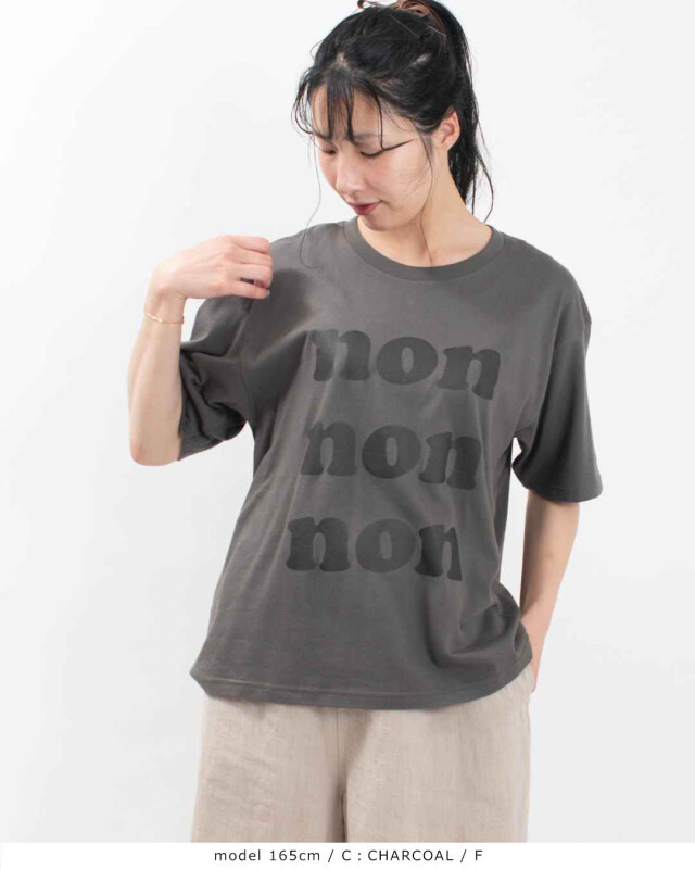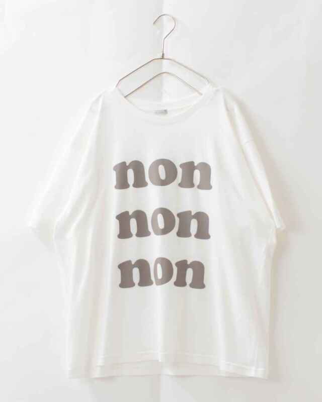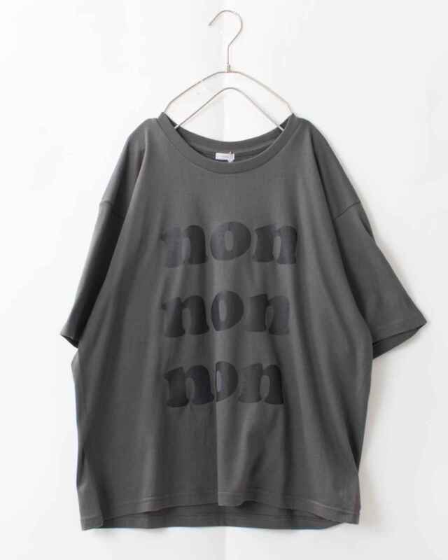 くったりと落ち感のある柔らかいコットン素材のロゴTシャツです。「non」のプリントが目を惹き1枚でさらりと着てもさまになります。