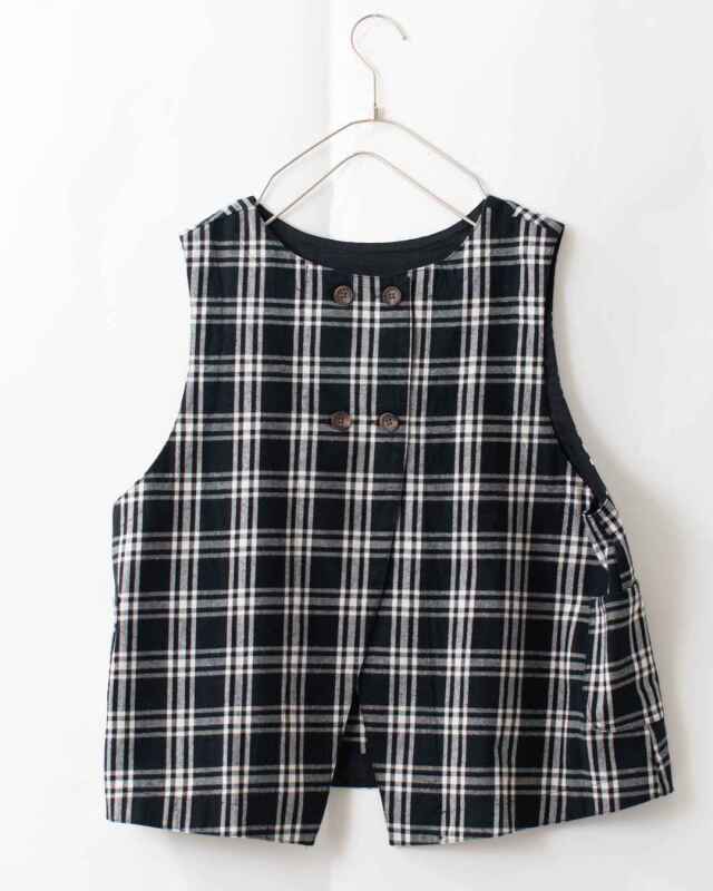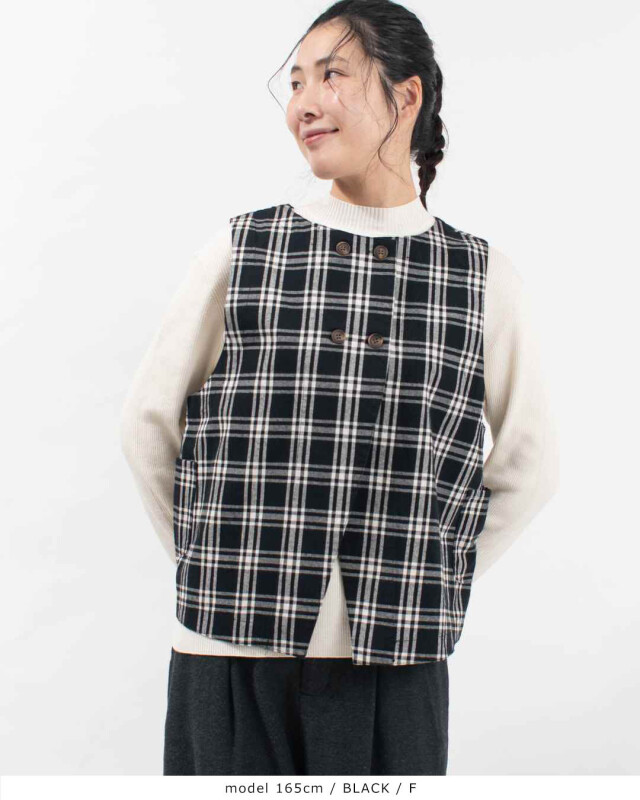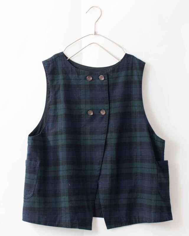 Wボタンとスリットが開いたようなデザインがポイント!コーディネートに合わせてスタイリングできる前後2WAYで着用可能なベストです。