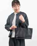 凹凸を抑えたマットな表情と、程よい張り感が魅力のカウレザーワイドトート。本体底部分を外縫いで仕上げることで、型崩れしにくく、きれいなシルエットをキープします。
