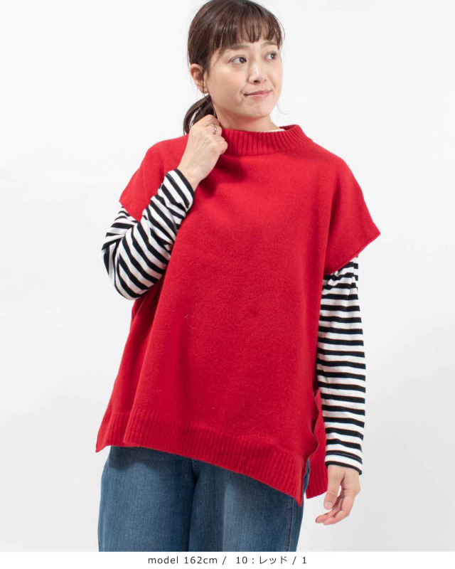 両サイドに深めのスリットが入っているので、インナーとのレイヤードが楽しめます。