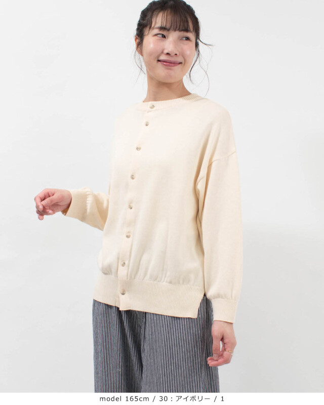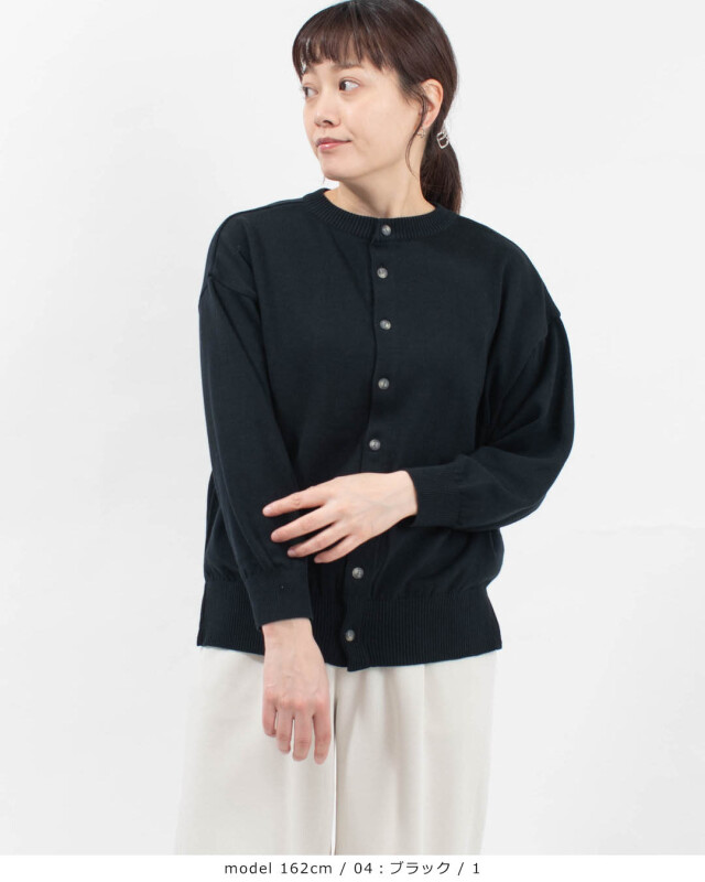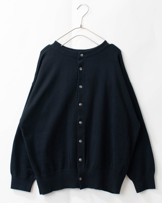 ボタンを前にしてカーディガンとして羽織るのはもちろん、ボタンを後ろにすれば、背中にアクセントのある上品なプルオーバーに早変わり。