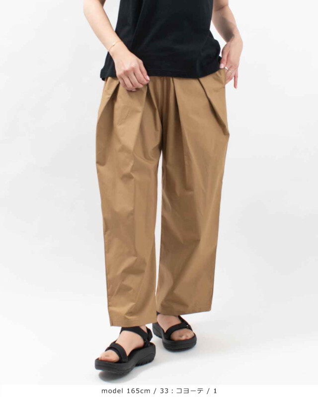 ウエストは総ゴム仕様で楽な履き心地です。ウエスト部分のタックで他と差のつくデザインです。