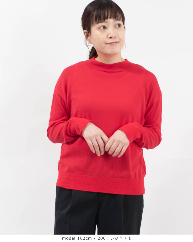 ふんわりと軽く、やさしい着心地が魅力のムースヤーン ハイネックニット。高品質な綿コーマ糸に起毛加工を施した、NARUオリジナルのムースヤーンを使用し、滑らかさと柔らかさを併せ持つ、こだわりの一枚に仕上げています。