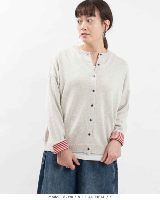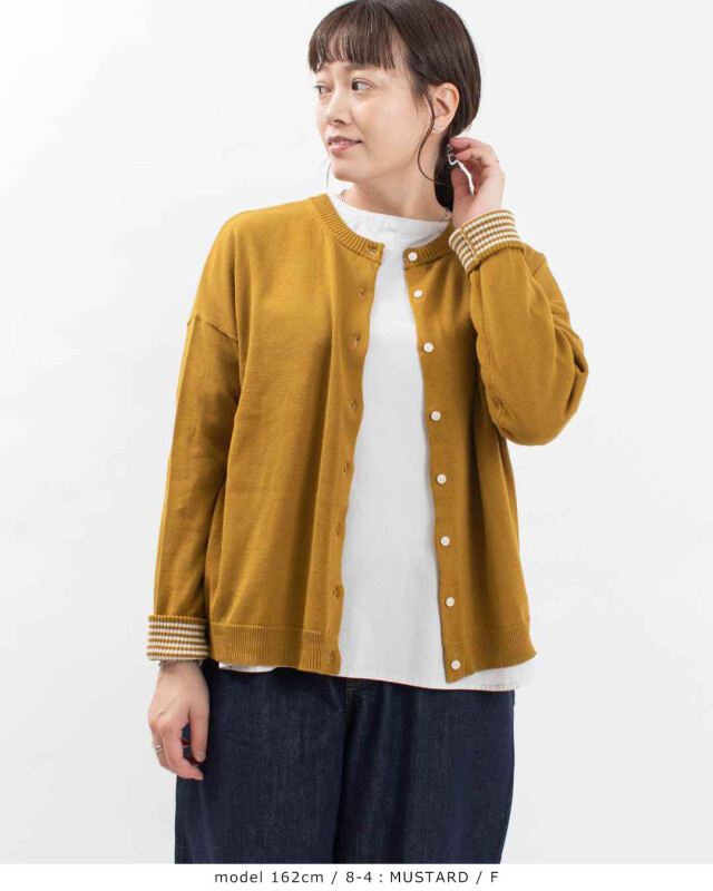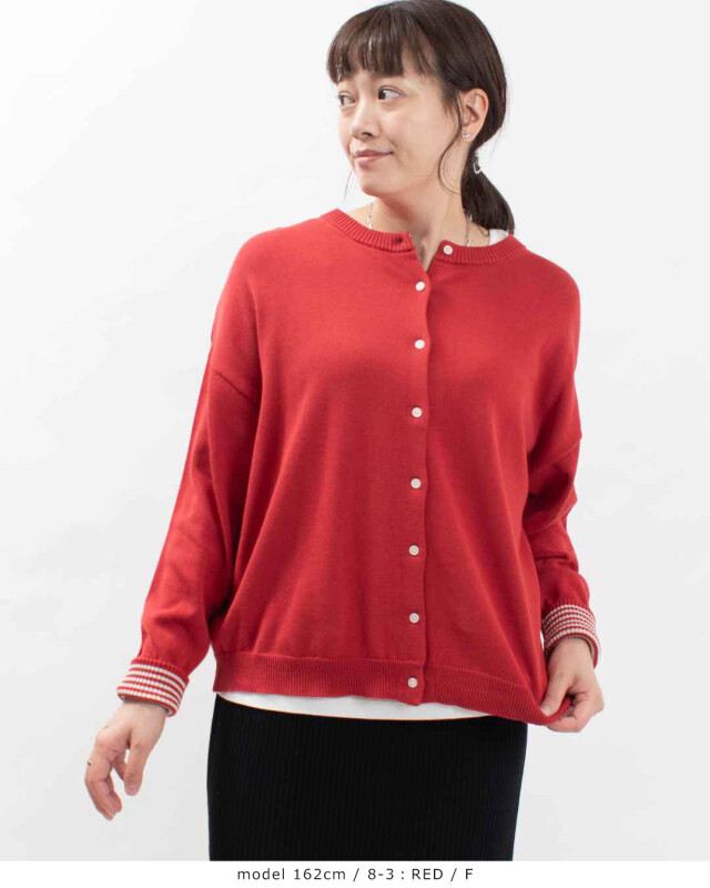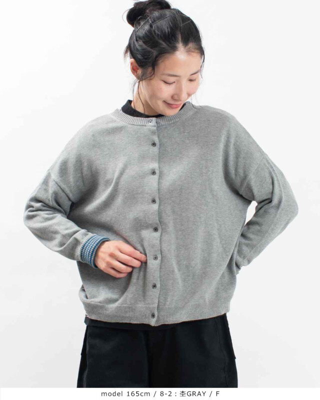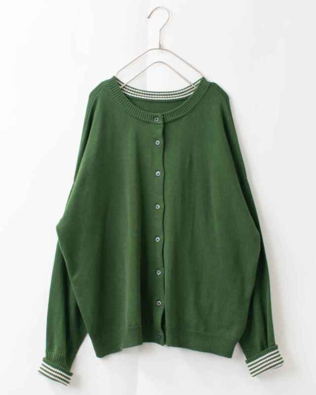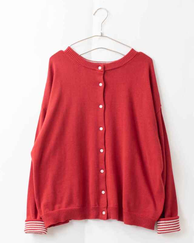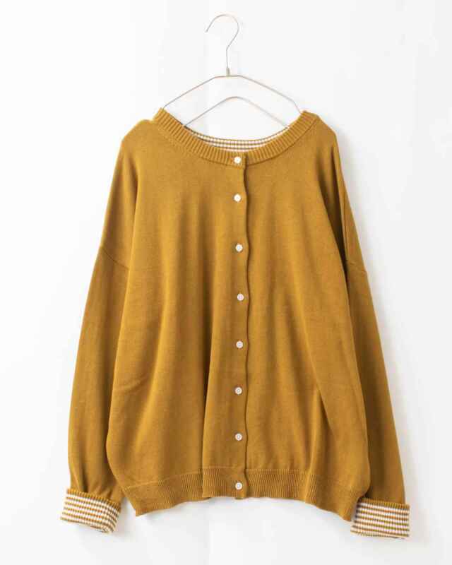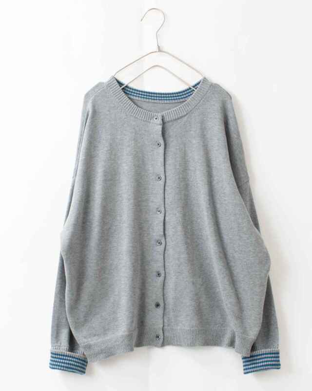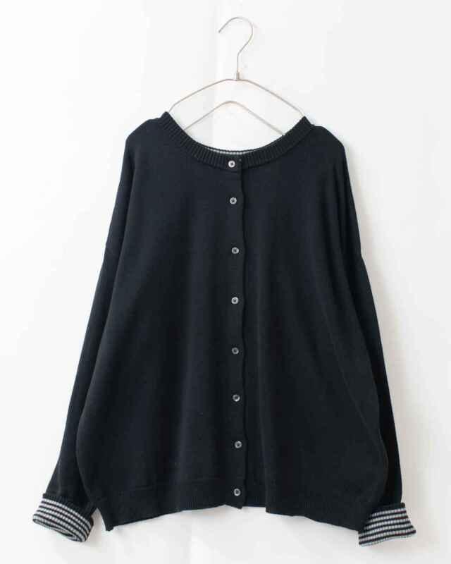 吸収性が高く、保温性があり、肌触りが良い定番綿ニット素材のカーディガンです。前後どちらを前にしても着られる、便利な2WAY仕様。