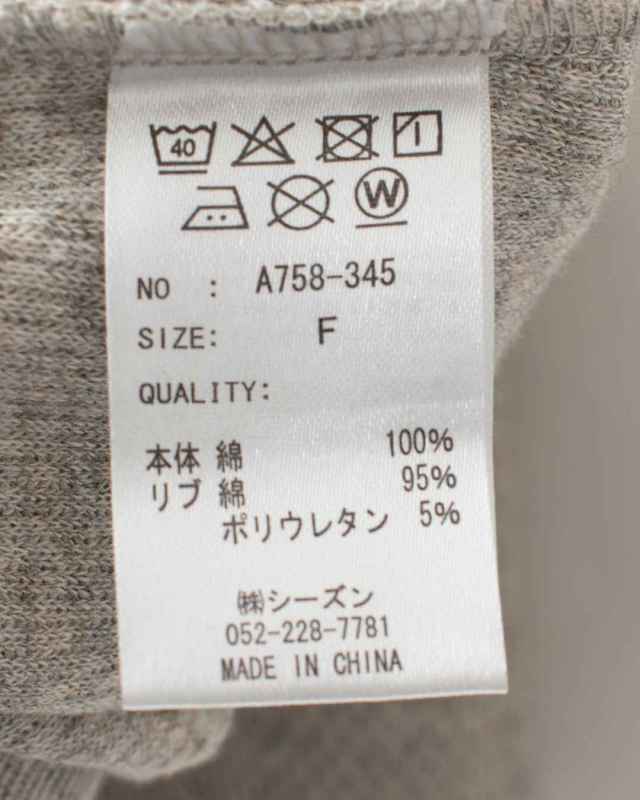 | 素 材 | 【本体】 綿:100% 【リブ】 綿:95% ポリウレタン:5% |