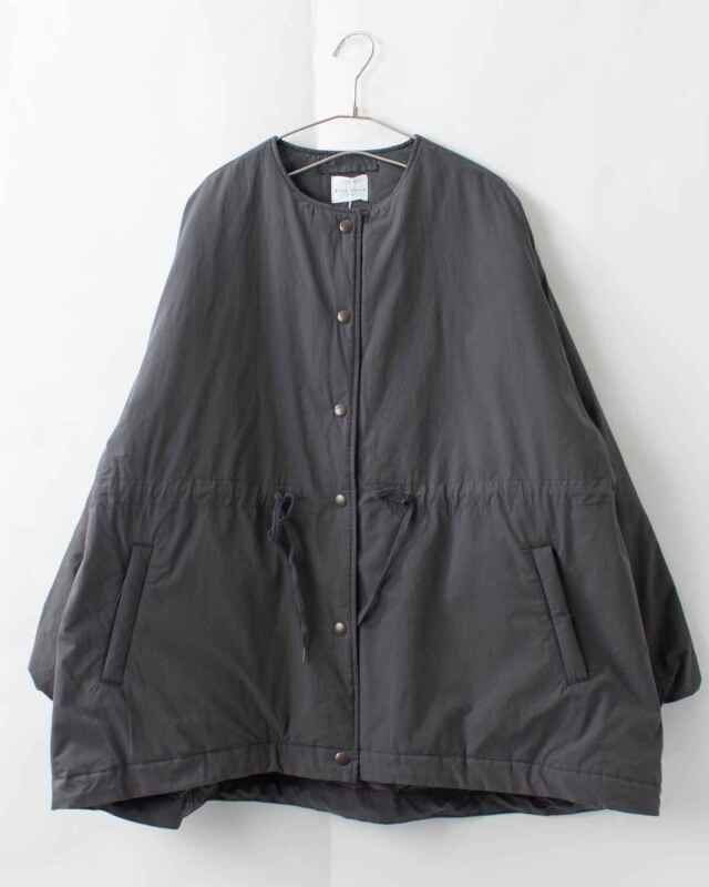 中綿入りの軽やかなボリュームのハーフガスコートです。ミリタリーテイストの雰囲気にふんわりシルエットで女性らしさをプラスしました。