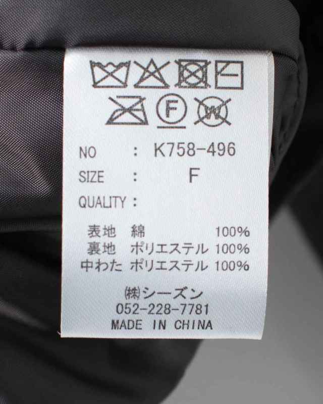 | 素 材 | 【表地】 綿:100% 【裏地】 ポリエステル:100% 【中綿】 ポリエステル:100% |