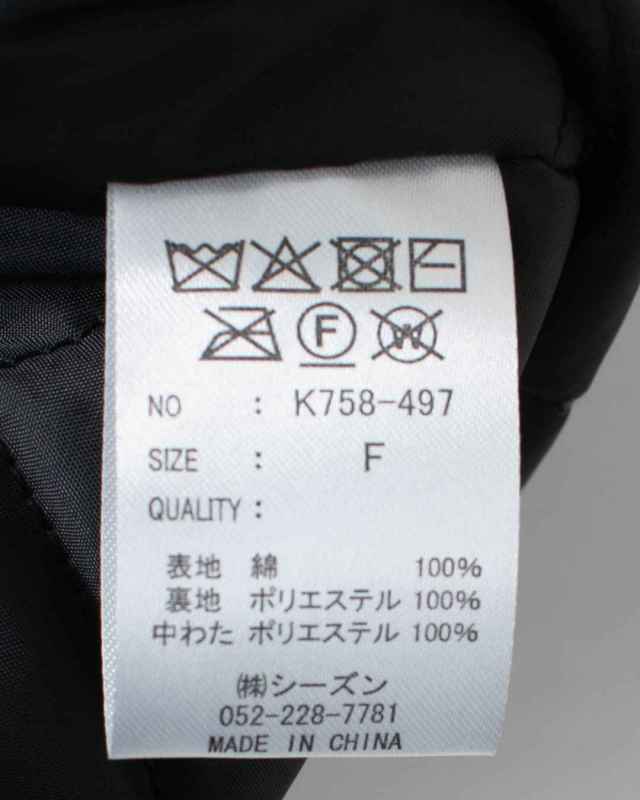 | 素 材 | 【表地】 綿:100% 【裏地】 ポリエステル:100% 【中綿】 ポリエステル:100% |