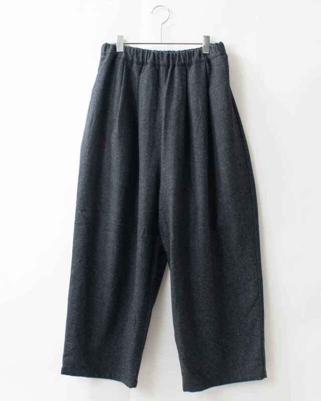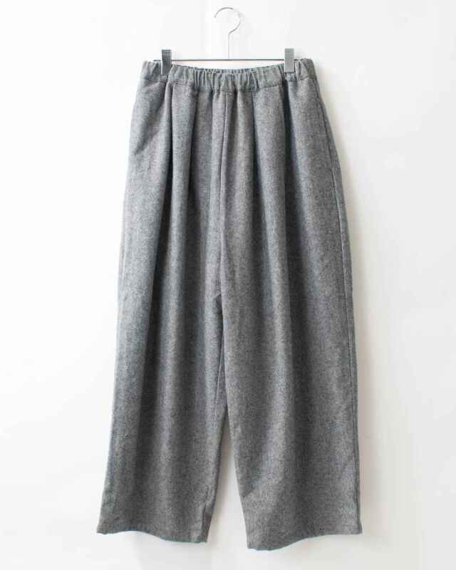 ややザックリとした織り感と自然な風合いが魅力!ナチュラルで上品な印象の生地感のタックワイドパンツです。