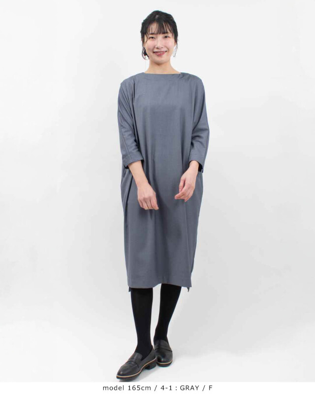 ゆとりのあるシルエットながら縦ラインがきれいに出るため、体のラインを拾いすぎず上品に着用いただけます。