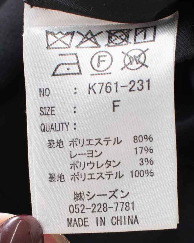 | 素 材 | 【表地】 ポリエステル:80% レーヨン:17% ポリウレタン:3% 【裏地】 ポリエステル:100% |