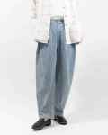 トリックジップシリーズから、柔らかな甘織デニムのバルーンパンツが登場!太ももにボリュームがあり、足回りはすっきりしたシルエットで体型をしっかりカバーしてくれます。