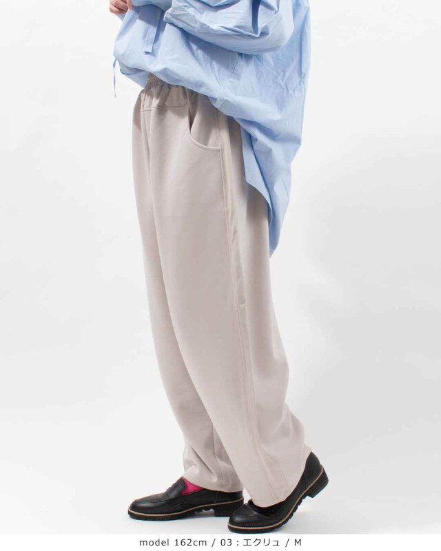 ウエストはゴム仕様で締め付け感がなく、デイリーに取り入れやすい一本です。