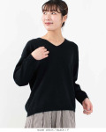 | 綿の肌触りのとても良いニットです。Vの開きがとても首元をスッキリと見せてくれます。大きすぎず、すこしゆったりとしたサイズで、一枚あればとても着回しが効くシンプルなニットです。 |