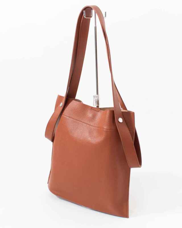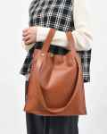 くるりとハンドルを回すとロングとショートの2通りの持ち方が出来る2デザインバッグ薄マチながら、底に隠しマチが付いているので大容量