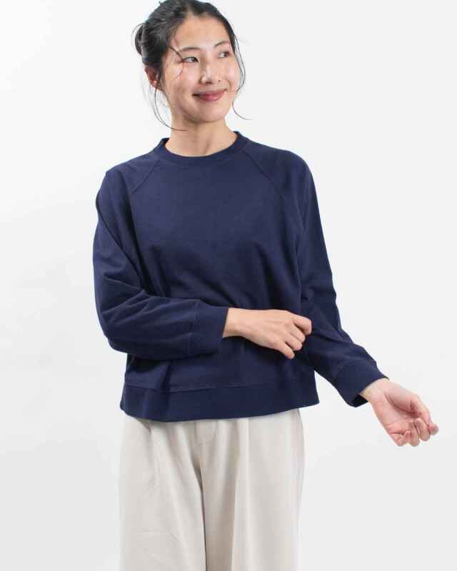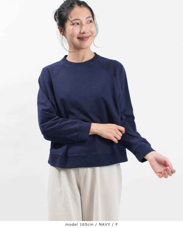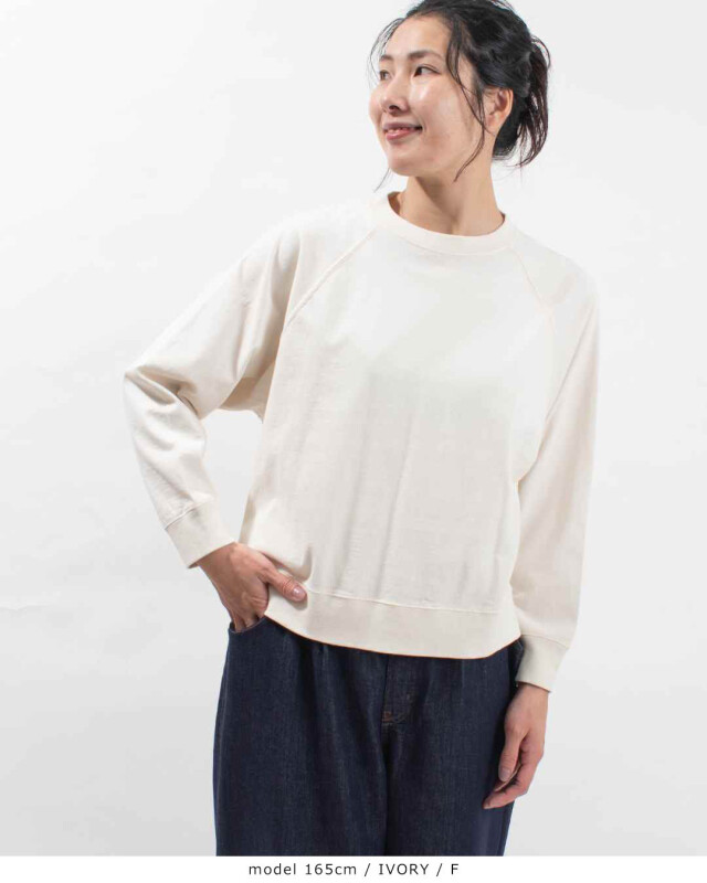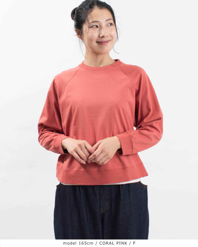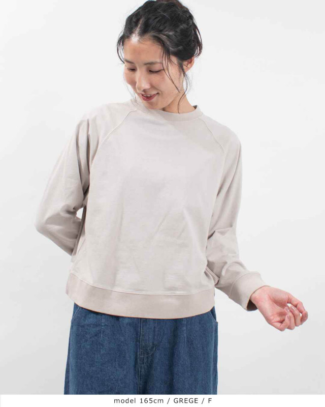 程よい厚みのあるシンプルなラグランスリーブのシンプルな長袖カットソーです。リブ部分もしっかりとした作りでデイリー使いに活躍してくれます