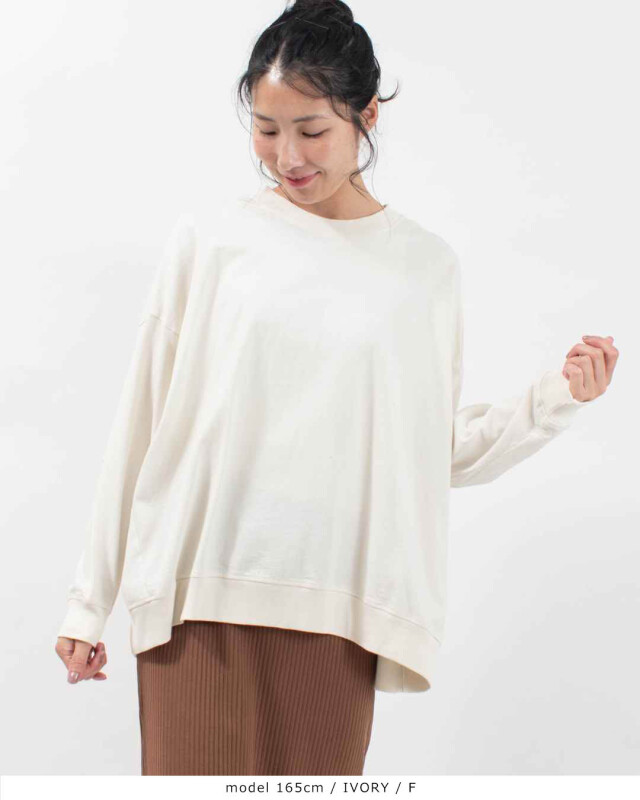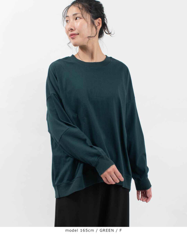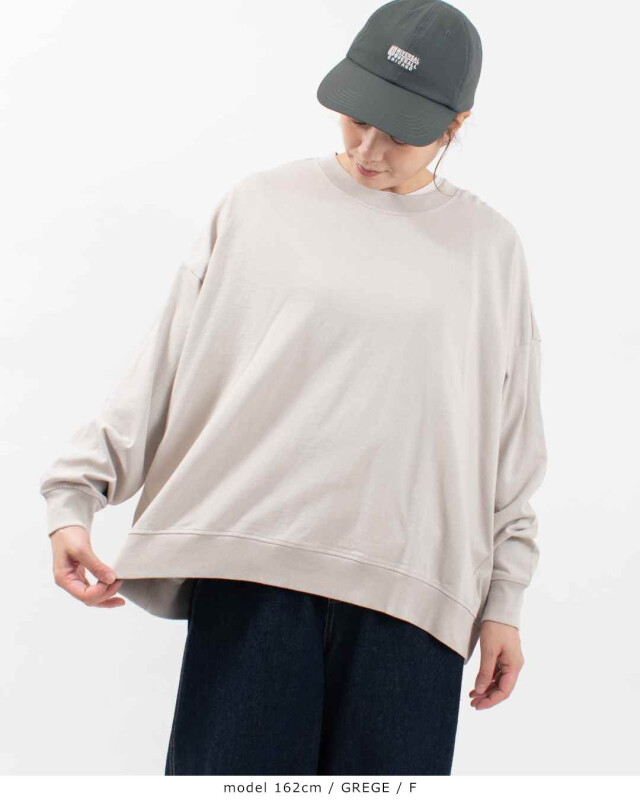 ドライタッチでふっくらした風合いのコットン天竺の長袖カットソー太めのシャリ感のある糸を使用した、しっかりめの中肉素材で一枚でさらりと着ていただけます。