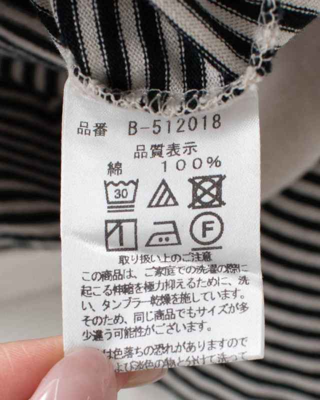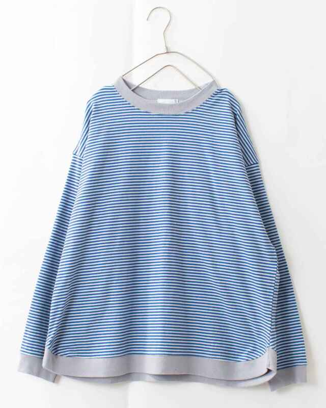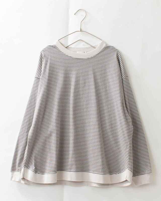 シンプルな0.3cmの細かいミジンコボーダーパターンに、緩やかな曲線のラウンドヘム裾がさりげないポイント!