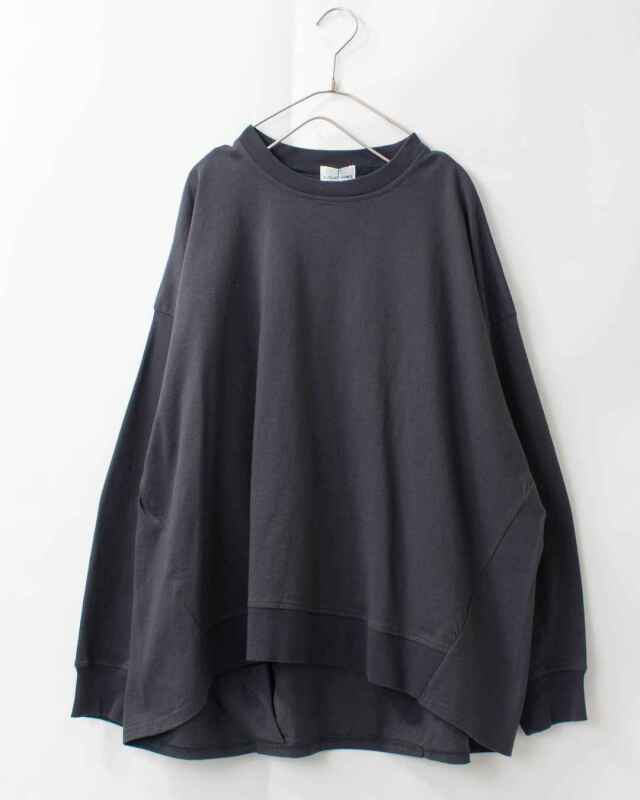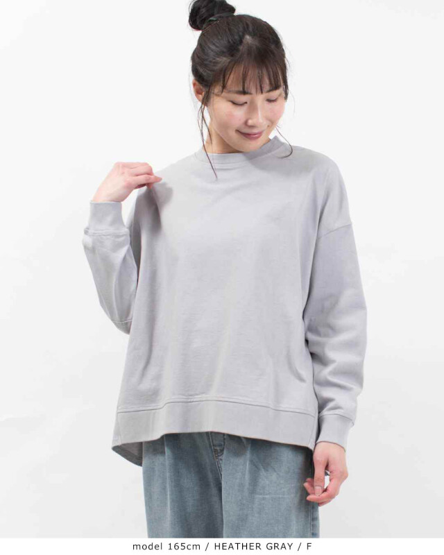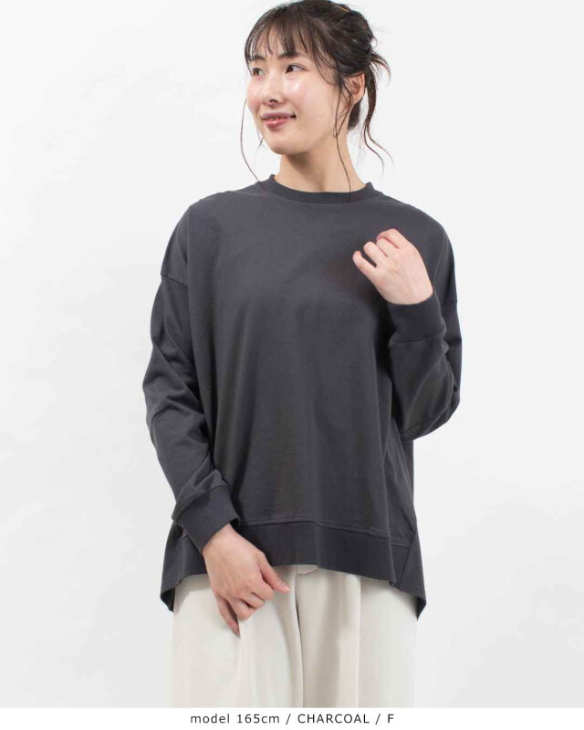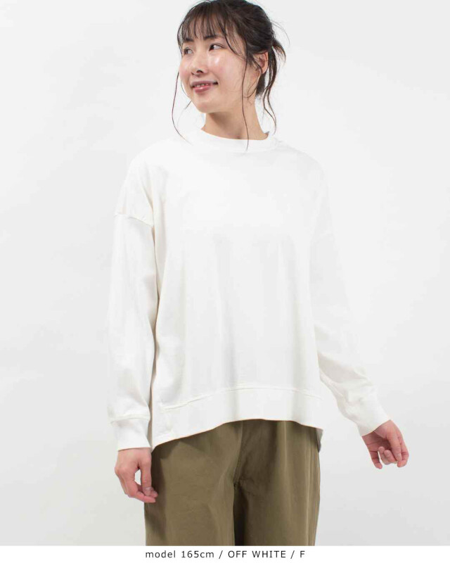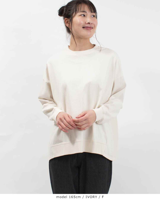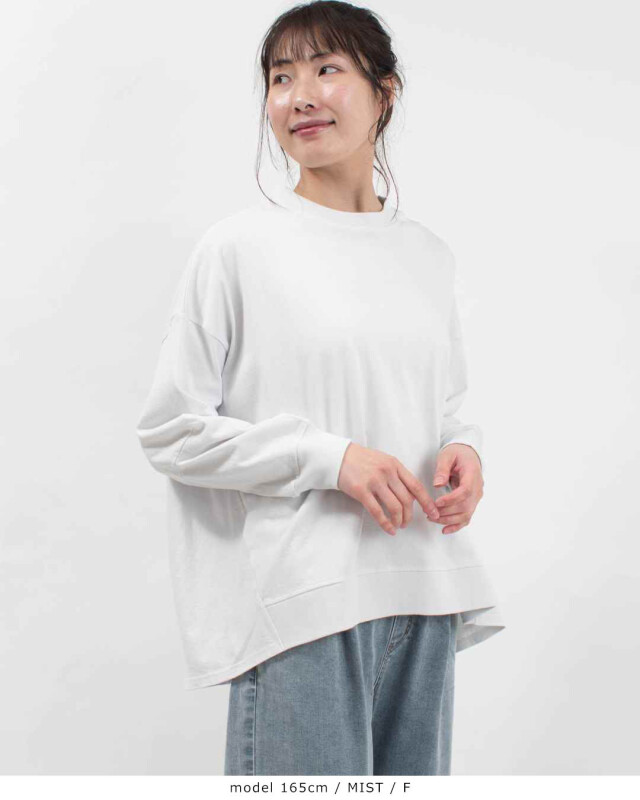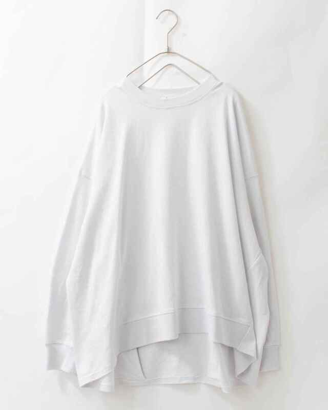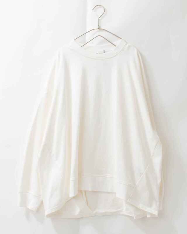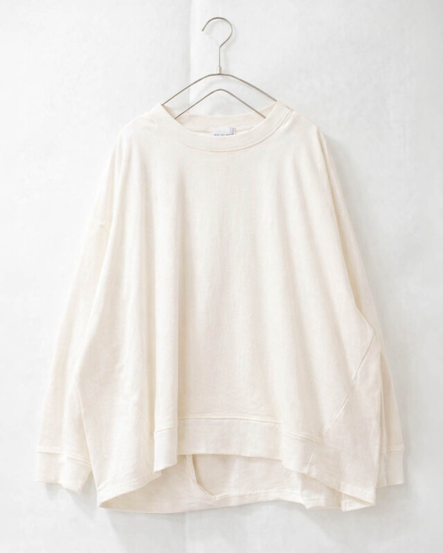 後ろ姿に、愛らしいゆとりを。心地よさと着映えを両立したバックタックプルオーバー。程よい厚みを備えた「アメリカンドライ天竺」を使用しました。