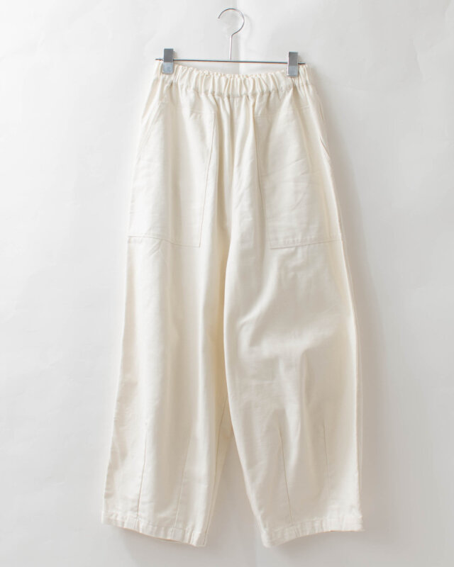 時を重ねたような風合いを、今の心地よさで。大人の日常に馴染む、上質なベイカーパンツ。BLUE LAKE MARKETから、素材の質感が際立つベイカーイージーパンツが届きました。