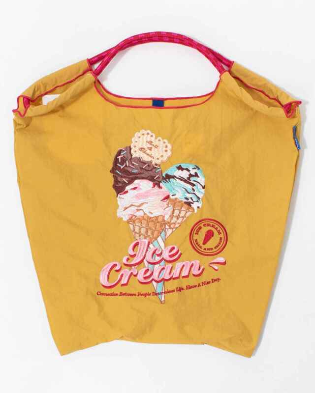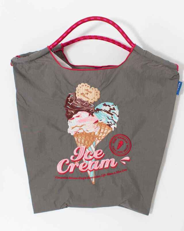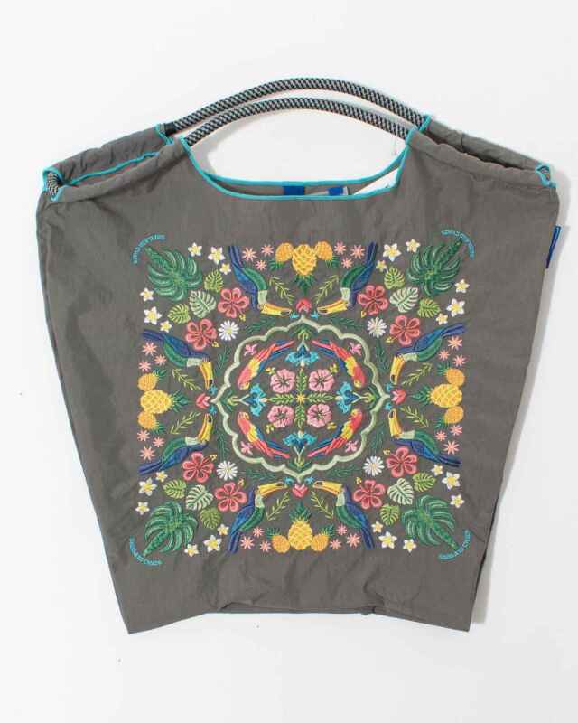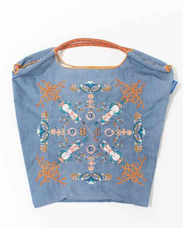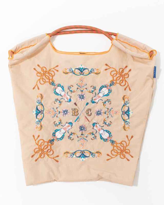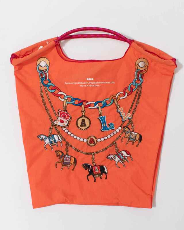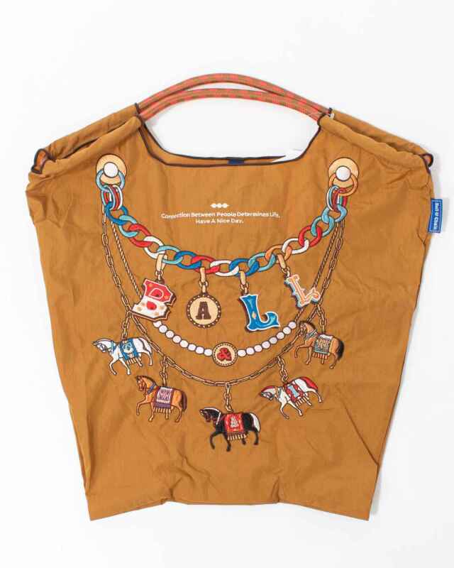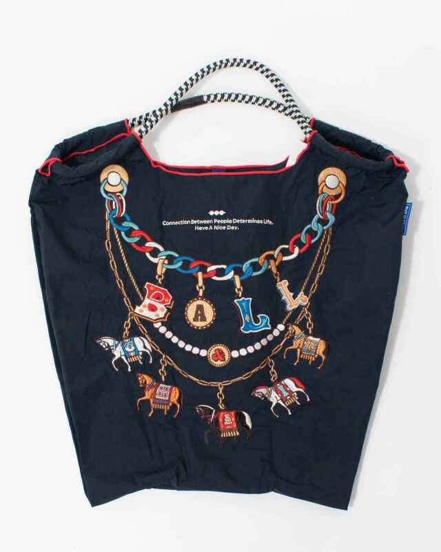 Ball and Chainは大切に使い続けたいと思える優れた デザインのショッピングバッグです。耐久性、撥水性に優れた厚手のポリエステル素材に、グラフィックデザインをそのまま「刺繍」で施すことで、