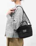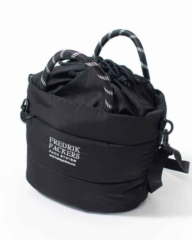 ふっくらとしたダウンジャケットのような本体が目を惹く、巾着型トートバッグ。ナイロンタフタの表地に、両絞り仕様の巾着開きで使いやすく、オリジナルロープハンドルがデザインのアクセントに。
