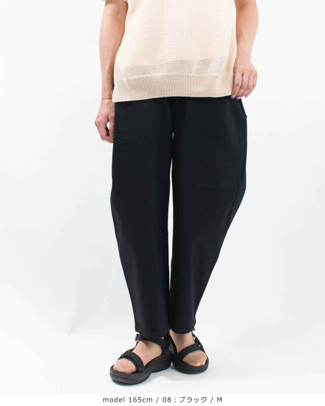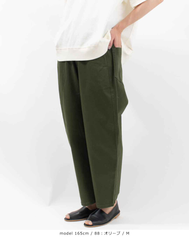 後ろベルトはインゴム仕様のため、ウエストまわりも窮屈感なくはいていただけます。