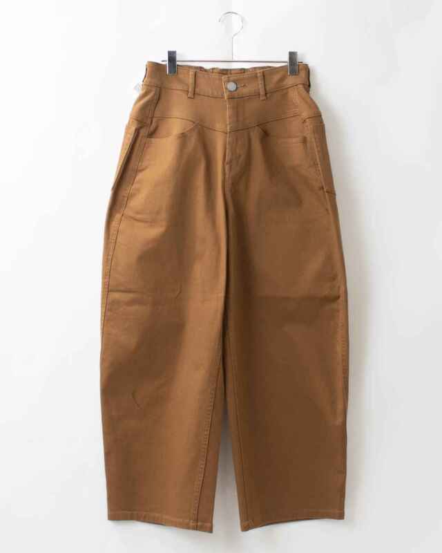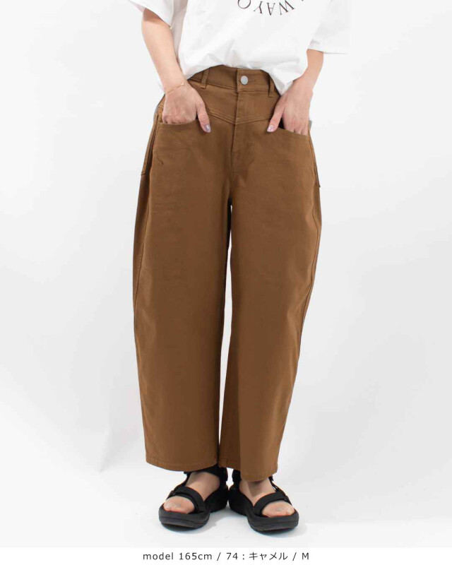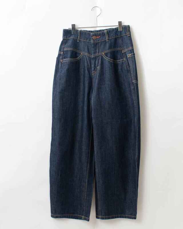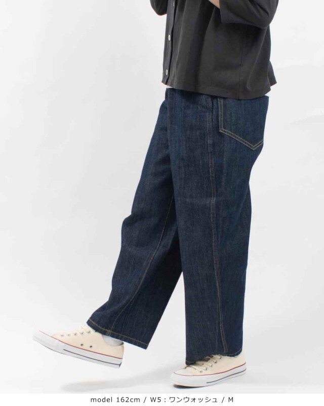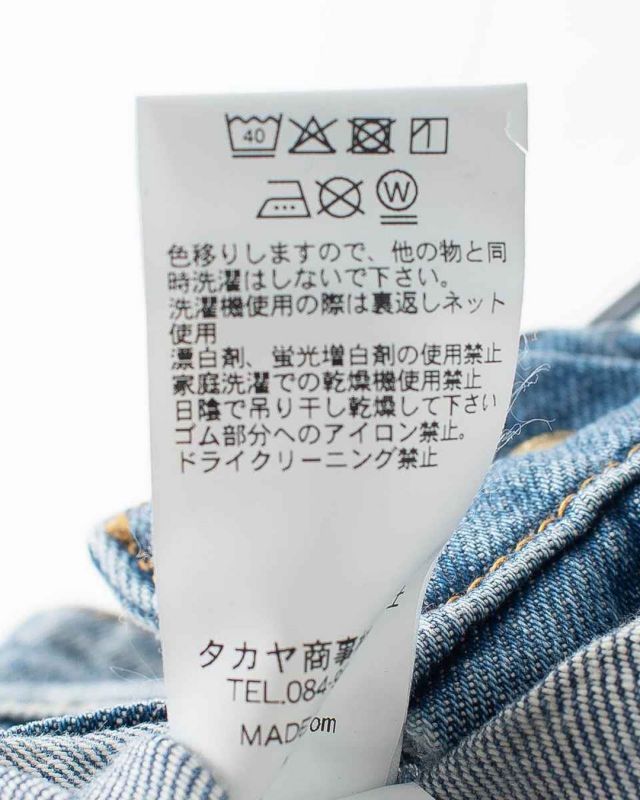 あえて古着のような色合いに仕上げた綿100%デニム素材です。はき込んで揉み込まれたような硬すぎない風合いになっています。