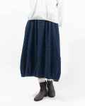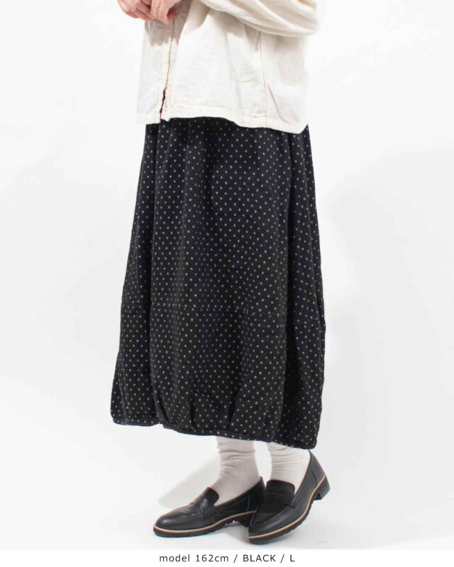 ふんわり丸みのあるシルエット デニムドットジャガード生地のバルーンスカート!やさしい丸みシルエットで大人可愛い、ジャガード織りバルーンスカートです。