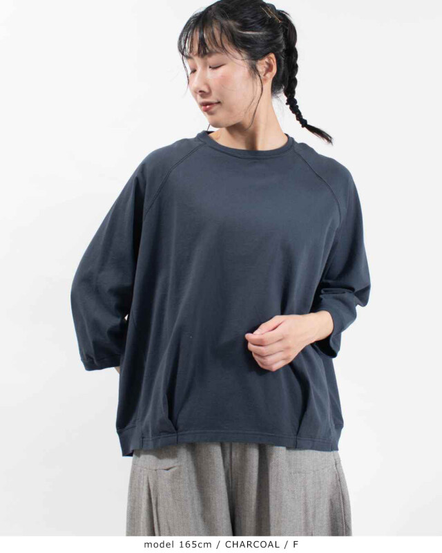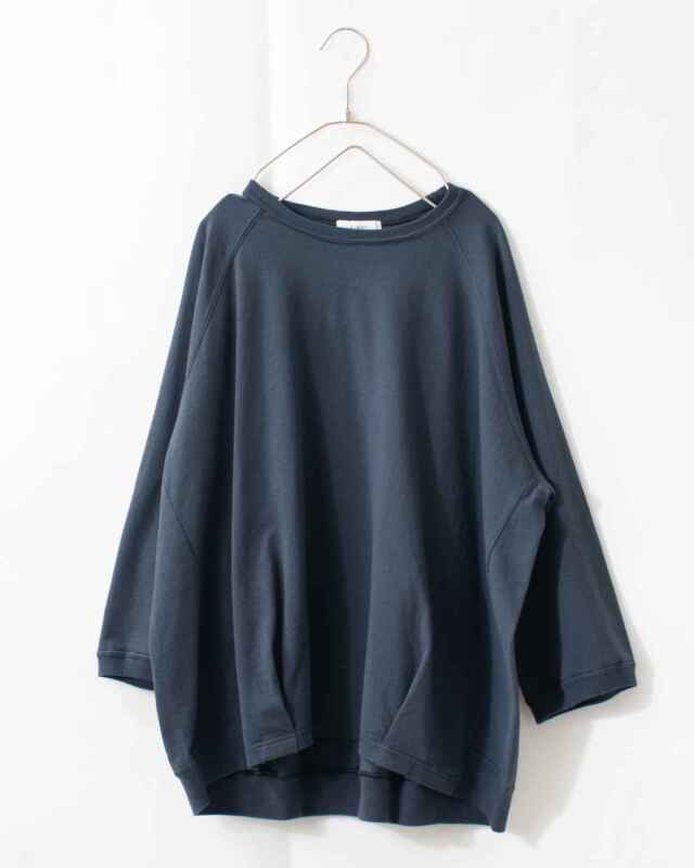 広めの身幅とラグランスリーブが、リラックスした着心地に。