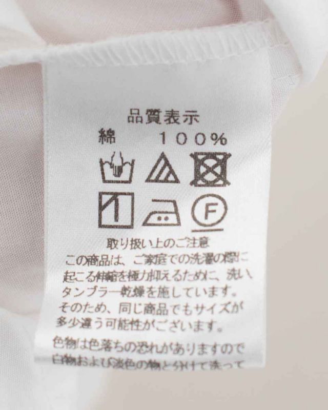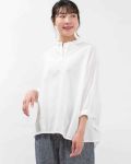 袖ギャザーでふんわりとした袖が女性らしいスキッパーシャツです。前裾には縦タック、後裾には横タックが入り、丸みの帯びたシルエットになっています。