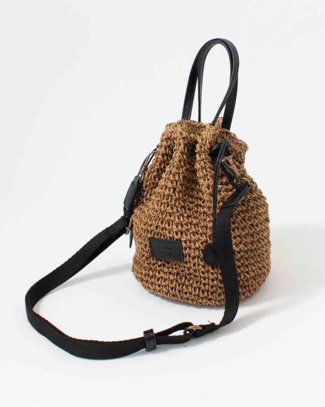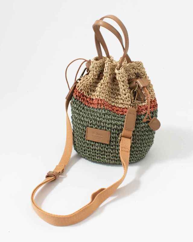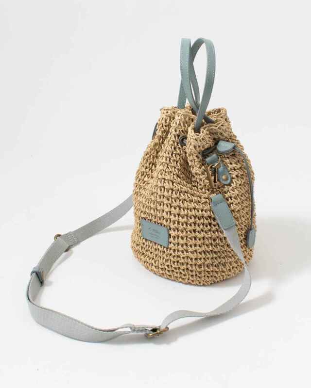 巾着をキュッと絞ったコロンと可愛いフォルムのバッグ、取り外しができる長さ調節可能なショルダーベルト付きで、ハンドバッグ・斜め掛けとシーンに合わせてお持ちいただけるデザイン。