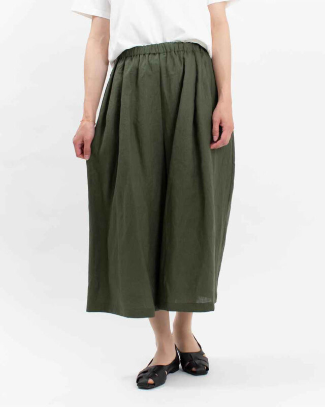 スカート見えする涼し気なパンツです。さらりとした肌触りが着心地の良いリネンがこれからの季節にぴったりです。