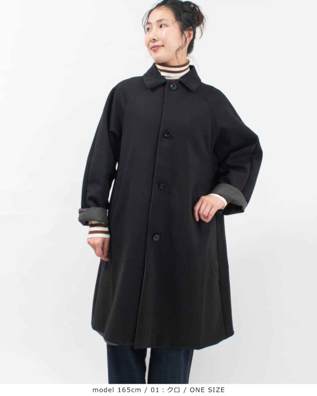 肩馴染みのよいラグランスリーブ仕様と、すっぽりと包み込むような丈感で暖かな1枚です。