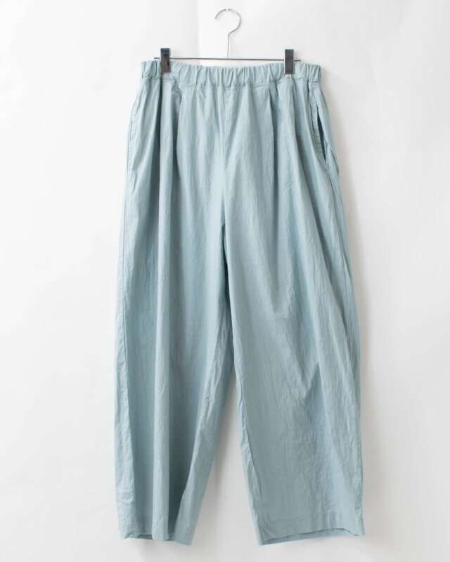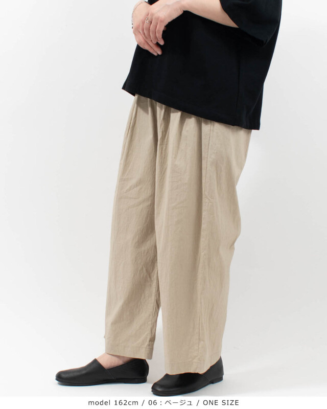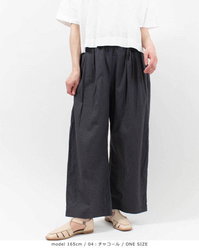 洗いざらしの心地よさと、美しい落ち感。日常に寄り添い、共に育つ一着。pritから、独特の素材感とリラックスしたシルエットが魅力の、タックワイドパンツが届きました。