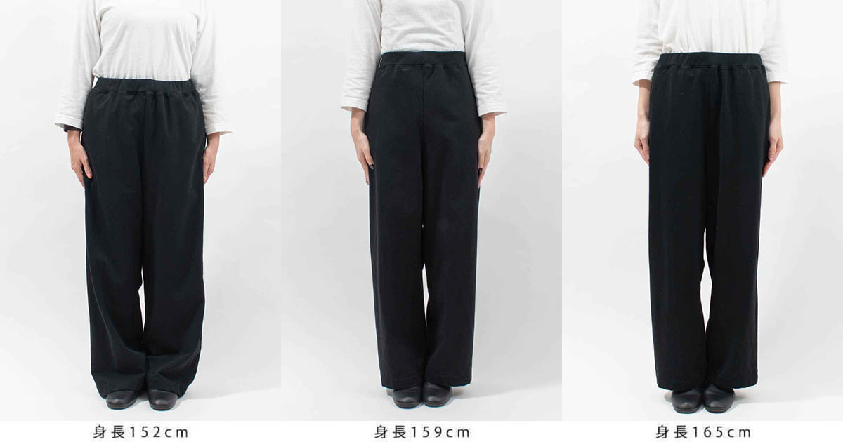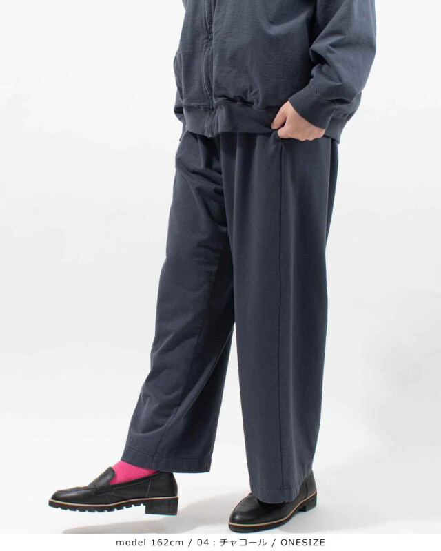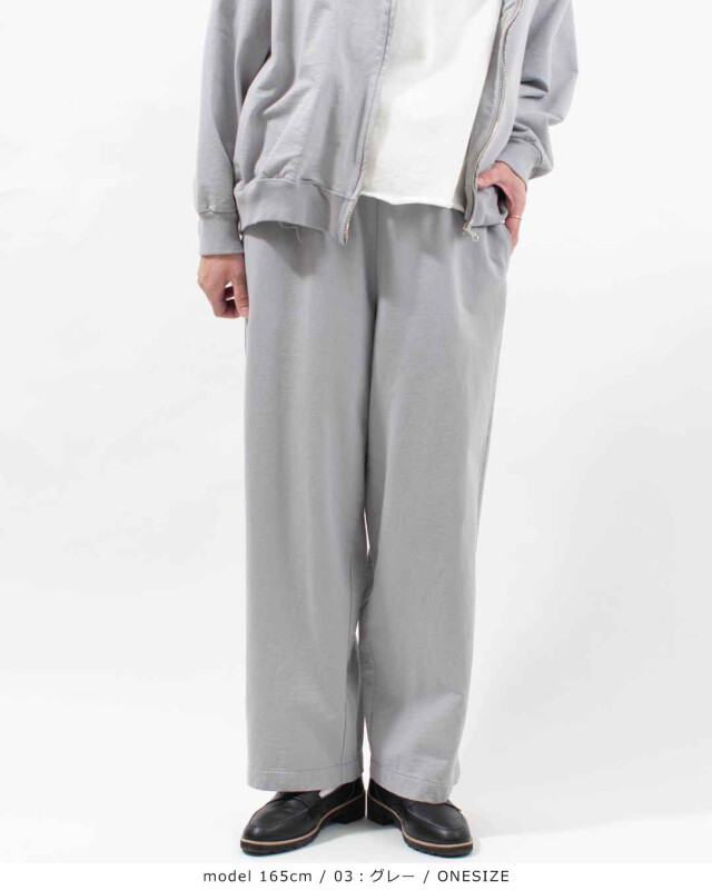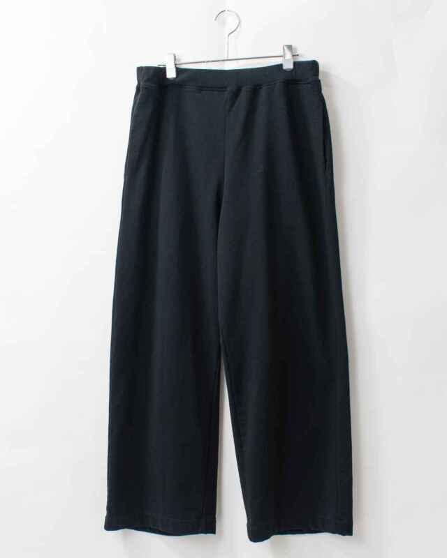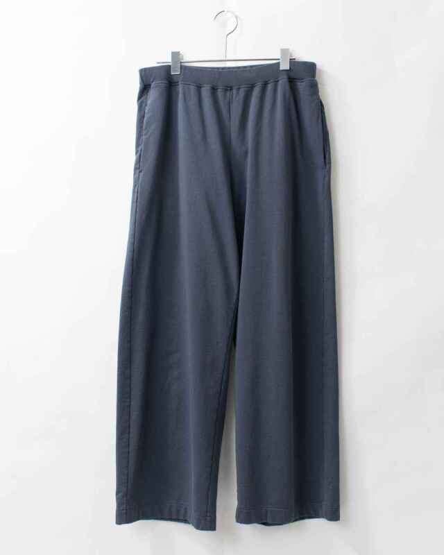 40/1 DEPENDランダムミニ裏毛素材を使用した、ワイドパンツ。毛羽が少なくドライタッチな風合いで、肌離れがよく快適な穿き心地が魅力です。