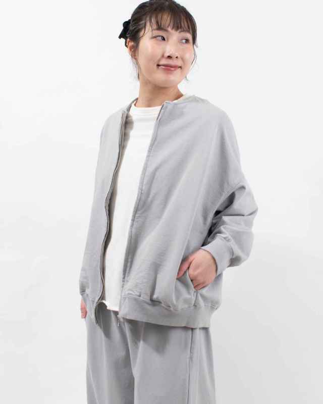 同素材のZIPブルゾンと合わせれば、統一感のある大人カジュアルなセットアップスタイルが完成。