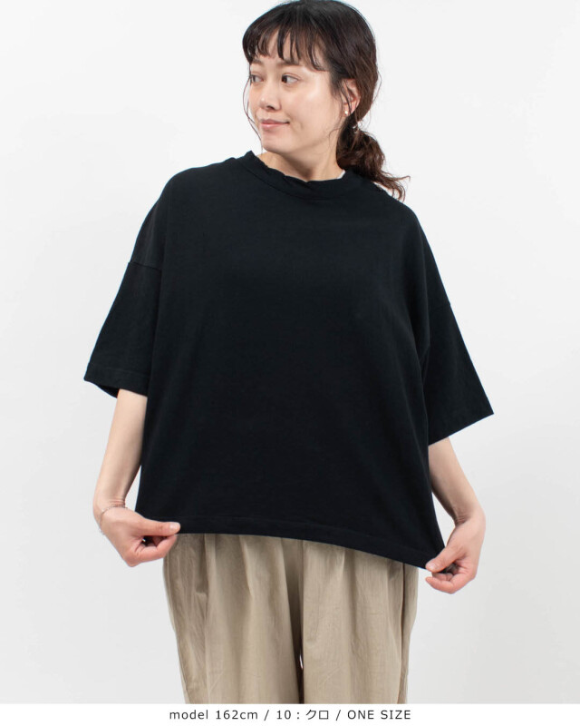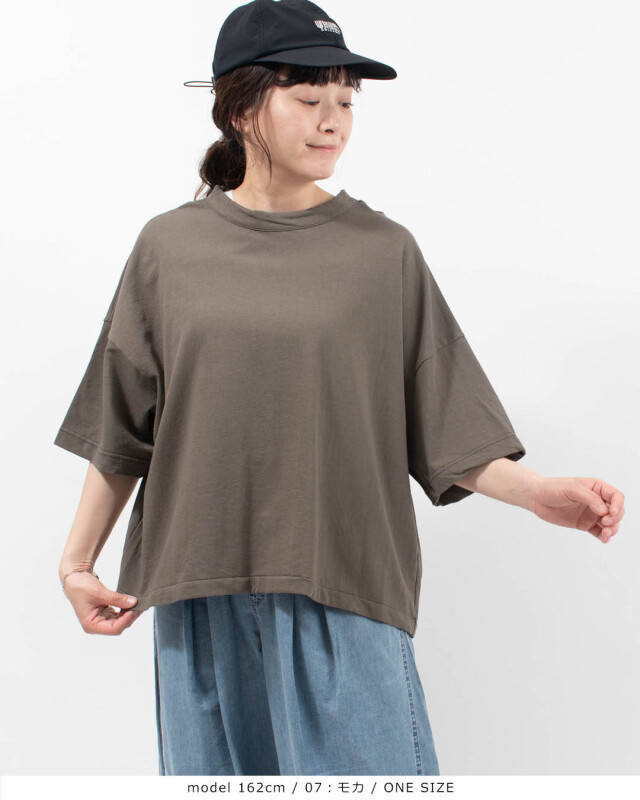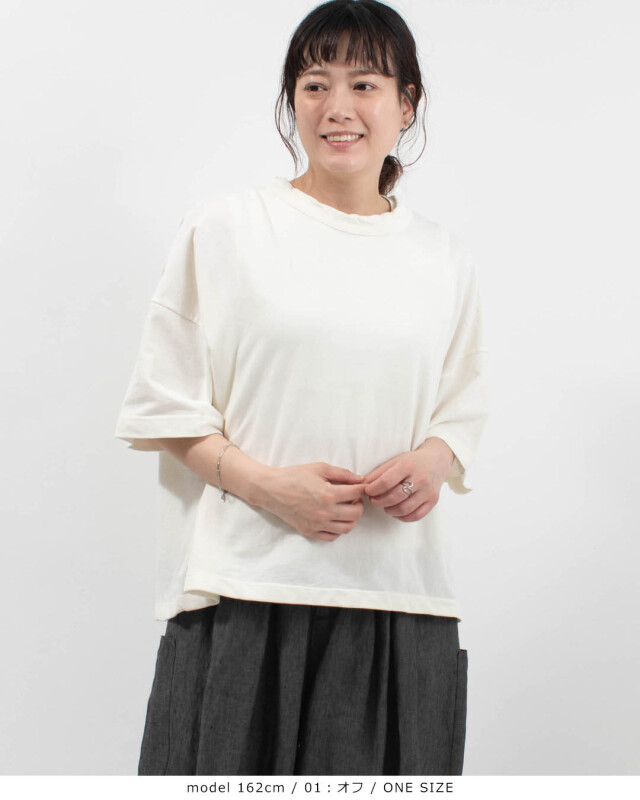 身体のラインを拾わないゆったりとした身幅に、二の腕をスマートに隠してくれる5分袖。