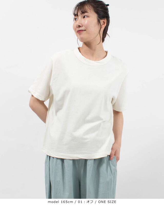 綿100%のナチュラルな風合いを活かしつつ、肌にまとわりつかない清涼感のある着心地を実現しました。