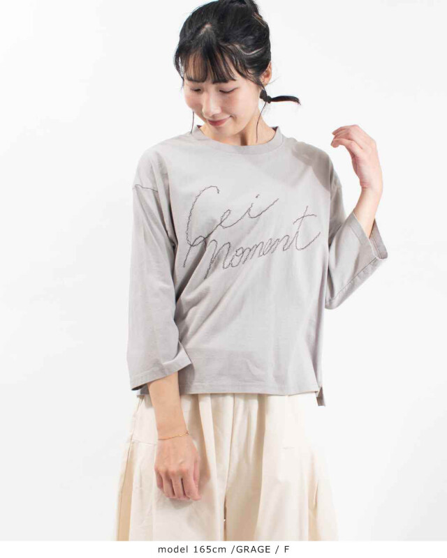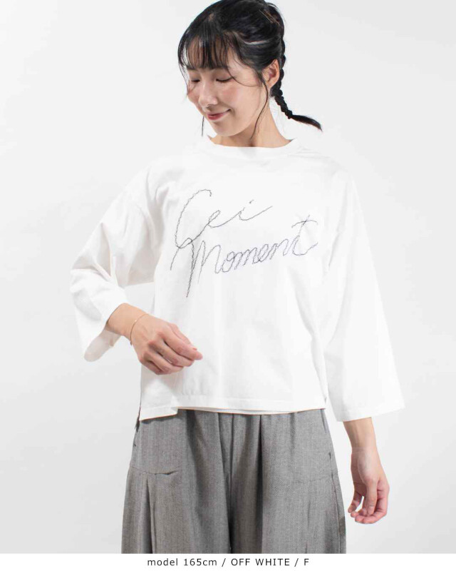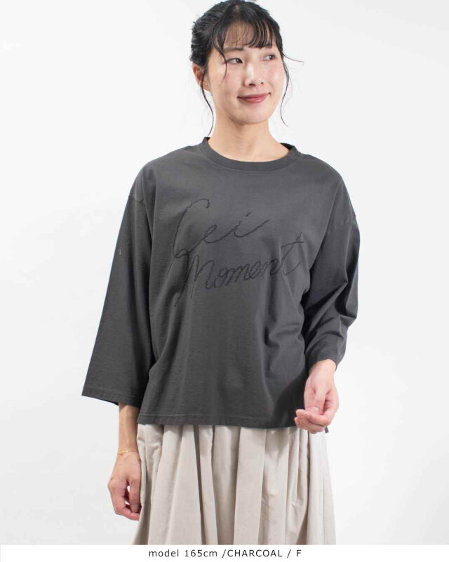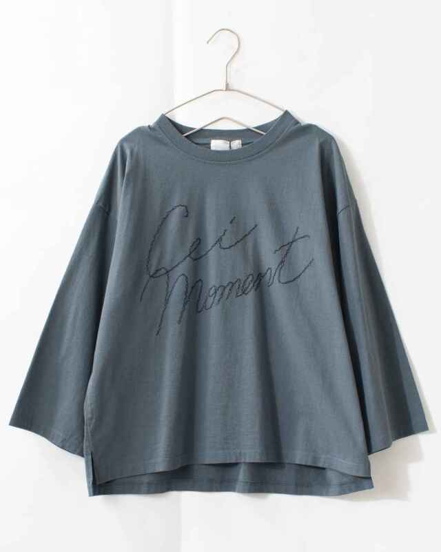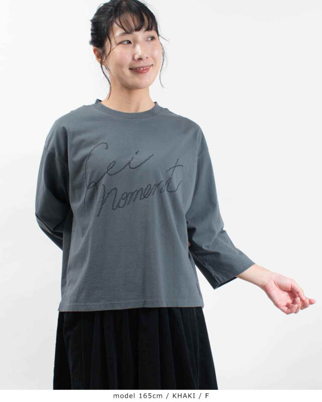 胸元にあしらわれた「Cei moment」の手書き風刺繍がポイント!一枚でもさまになるデザインです。