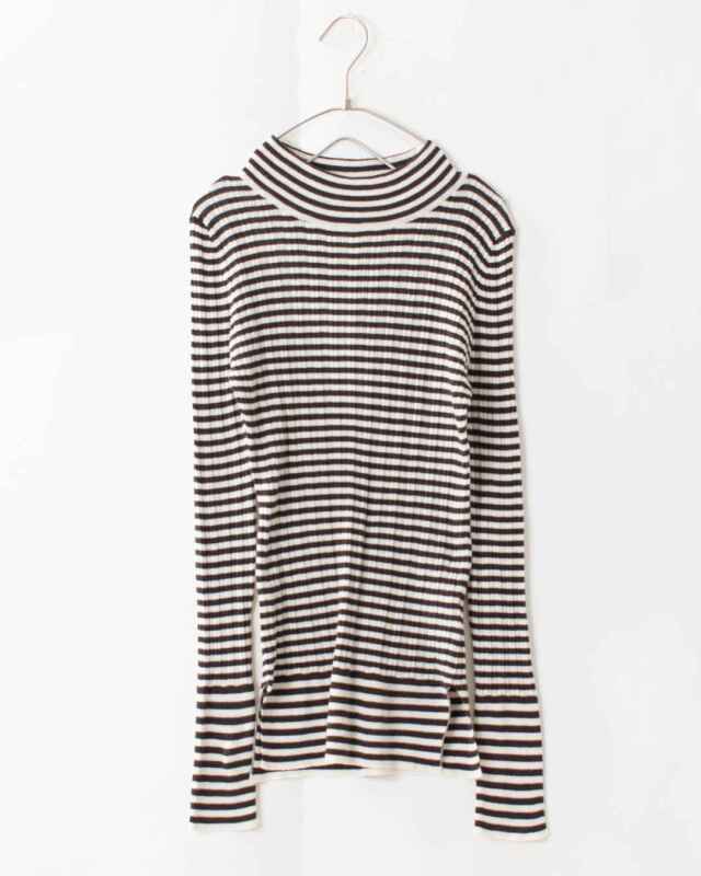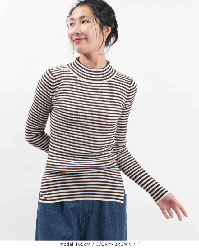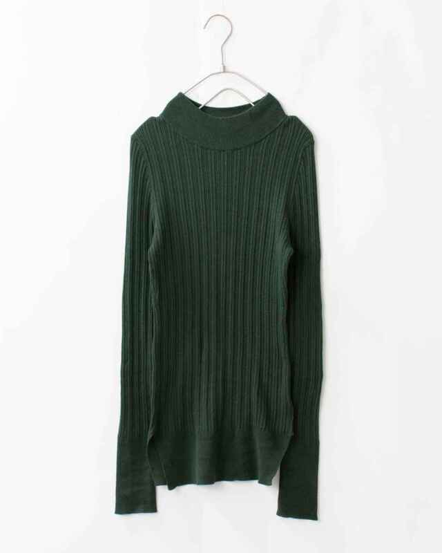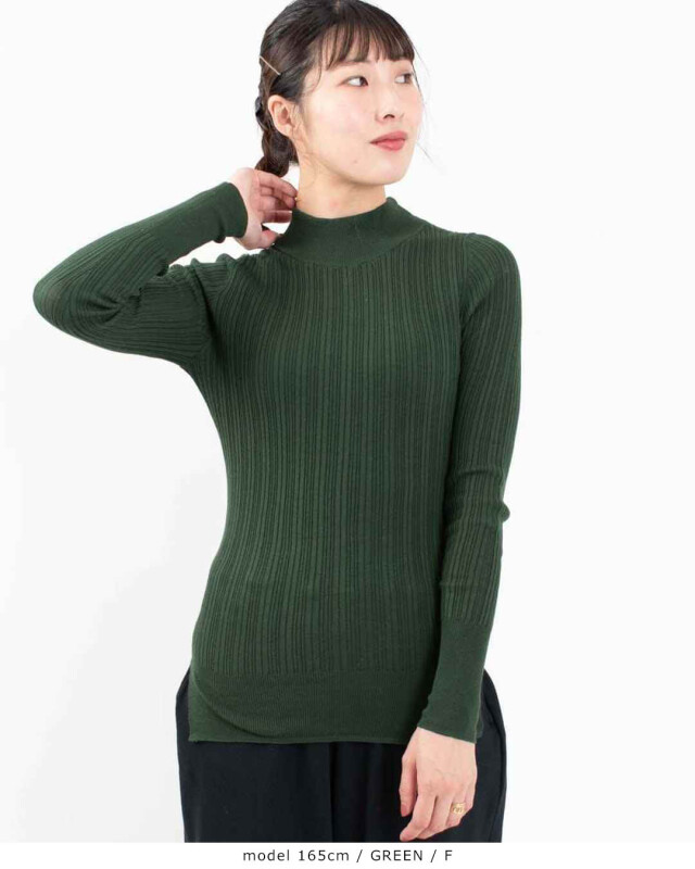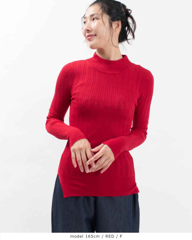 ほどよく体にフィットするテレコ素材のモックネックプルオーバーです。締め付けがなく、やわらかなくしゅくしゅ感を作ることができます。